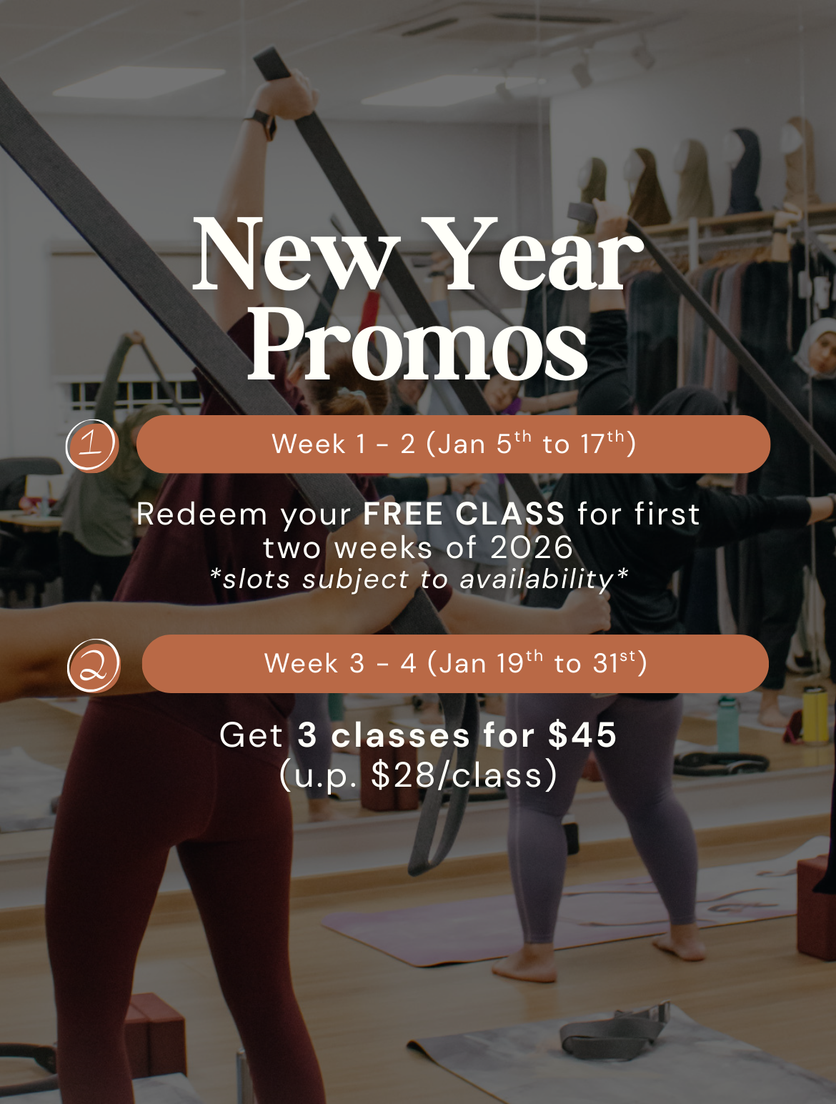 We offer a range of programmes, from a restful and tranquil atmosphere to heart pumping dance classes to keep you steady and going.