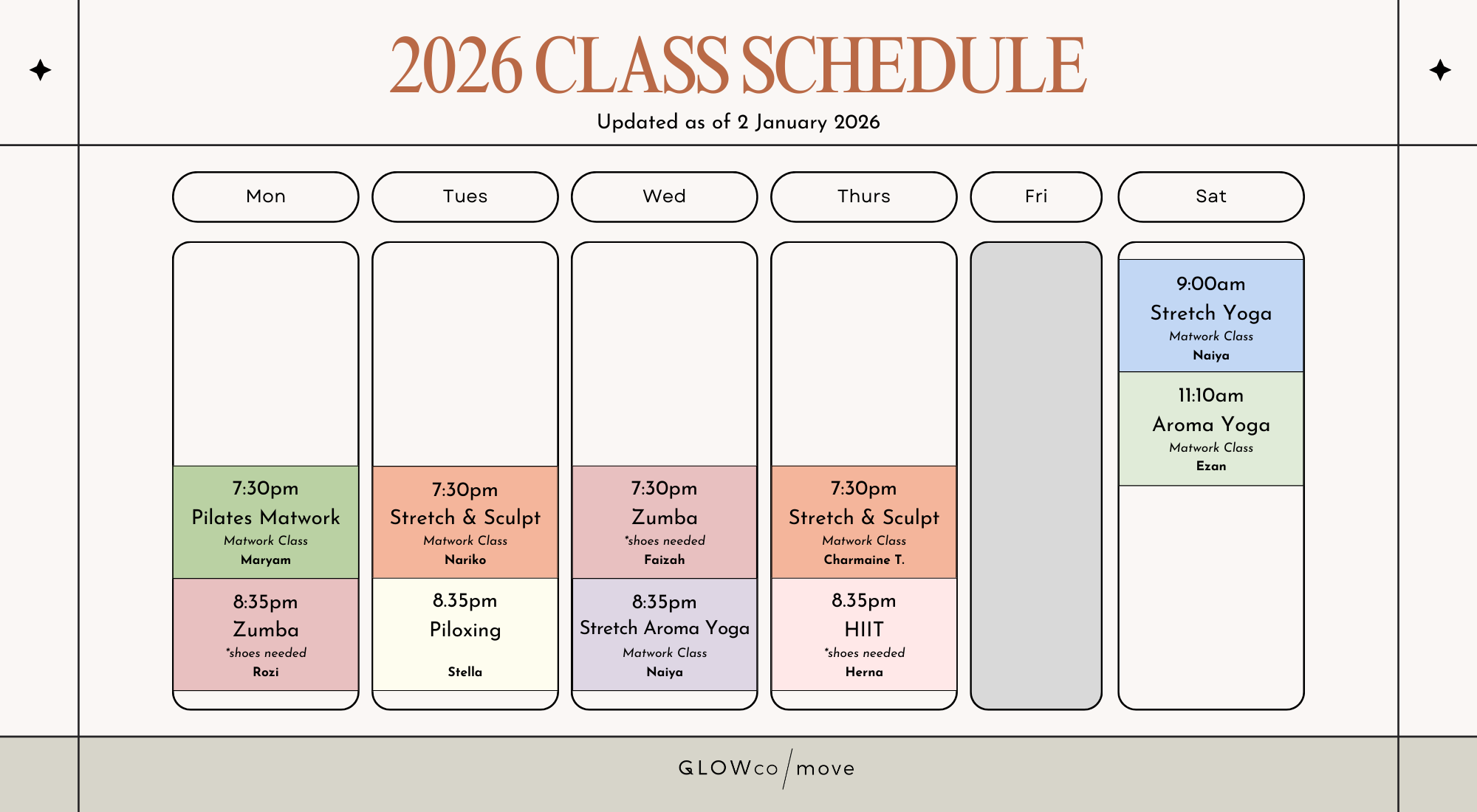 *Do note that shoes are required for Zumba while Calm and Core classes are carried out barefoot with no shoes required.